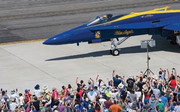 The air show brings the aerial acrobatics of the U.S. Navy Blue Angels, as well
