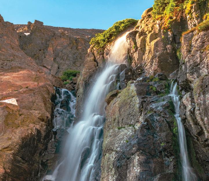 IN LATE SUMMER, waterfalls flow through Colorado’s rivers, rejuvenating parched landscapes. Sightseers seek reminders of nature’s ceaseless movement and the thrill of watching water cascade over stone. Last issue, we visited waterfalls on Colorado’s Western Slope. This time, we turn to the state’s northern mountains and Front Range for a summer sequel of wet and wild wonders.