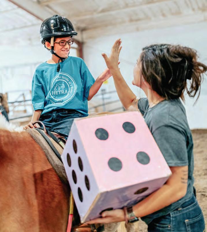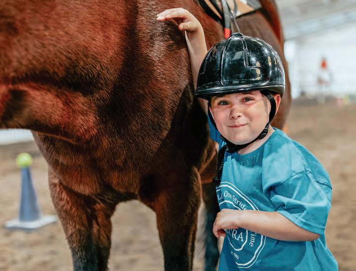Cooper has gained confidence through equine therapy. Going from having a leader and two side walkers to riding solo, Jorgensen appreciates the help HETRA has provided her son, who has autism. Today, his best horse friend at the farm is Halo.