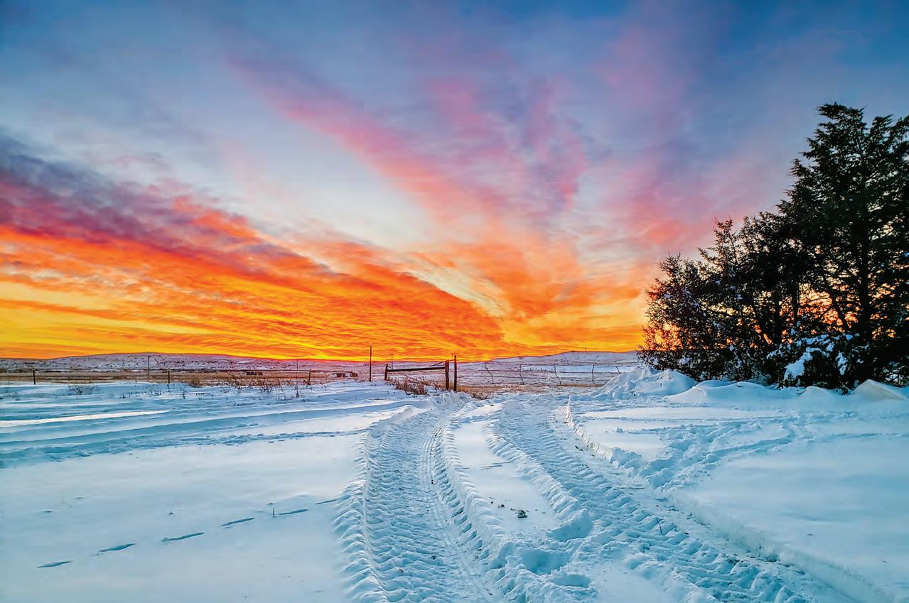 THE SKY WAS sharp and clear as photographer Jeff Phelps drove home from Scottsbluff to Sidney in the latenight hours of Dec. 7, 2022. The ground was dusted with freshly fallen snow, and the world around him was as still as Nebraska’s monolithic icon, Chimney Rock.