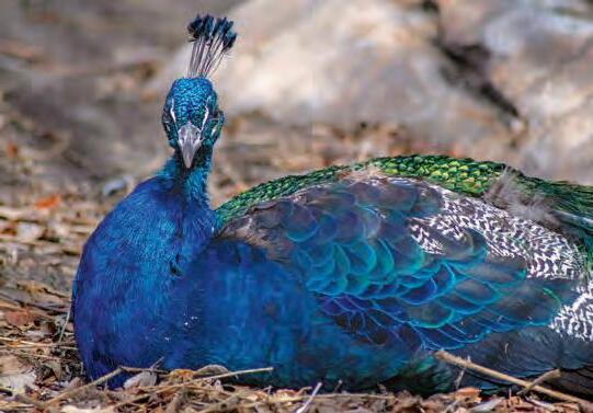 A peacock is one of the more familiar birds at an aviary filled with exotic species originating in locales all across the globe.