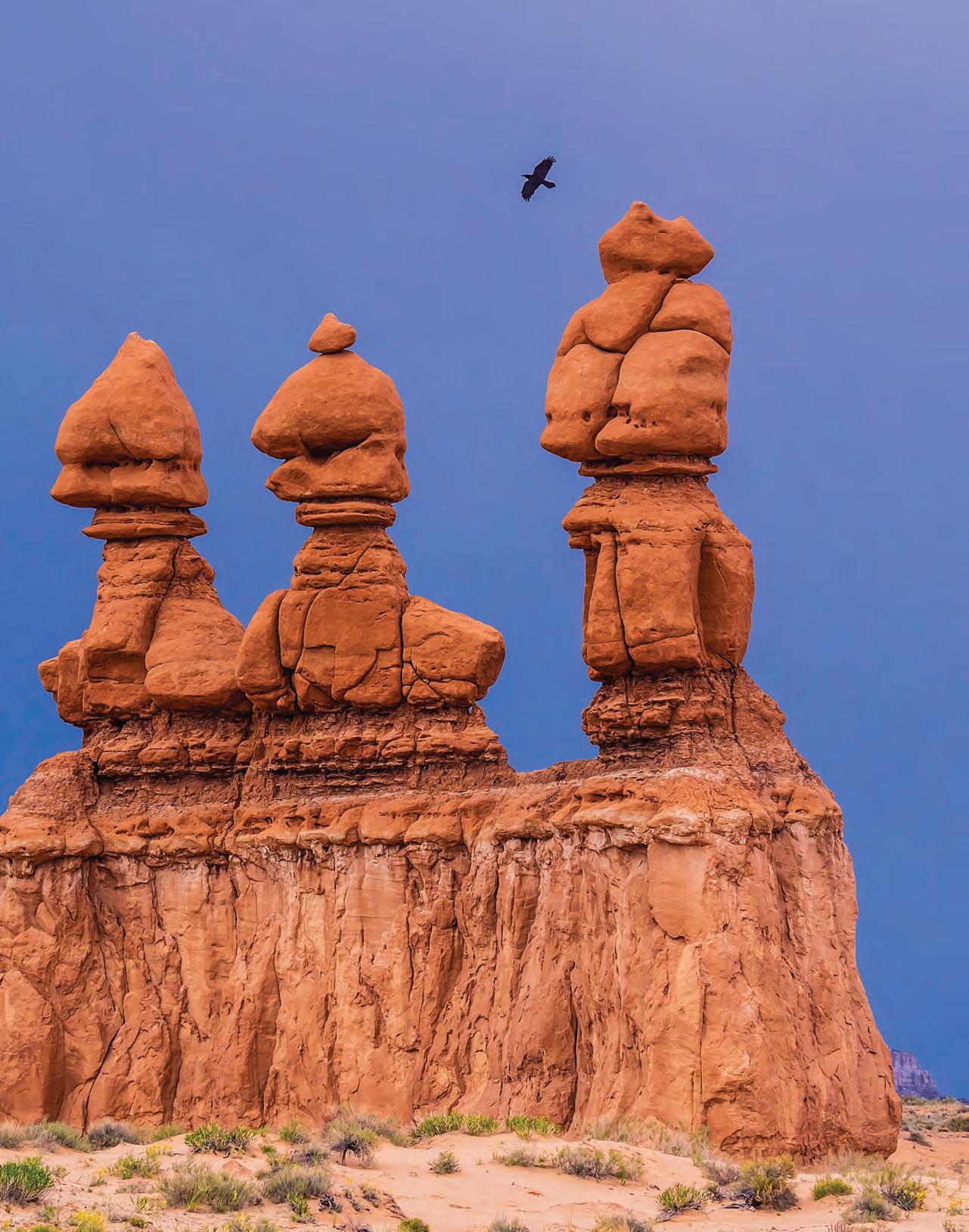 IN A STATE full of otherworldly geology, the hoodoos of Goblin Valley State Park stand out as being particularly bizarre. Situated north of Hanksville at the edge of the San Rafael Swell, the park features thousands of mushroom-shaped hoodoos that, if you look at them in the right frame of mind, might seem like an army of goblins.