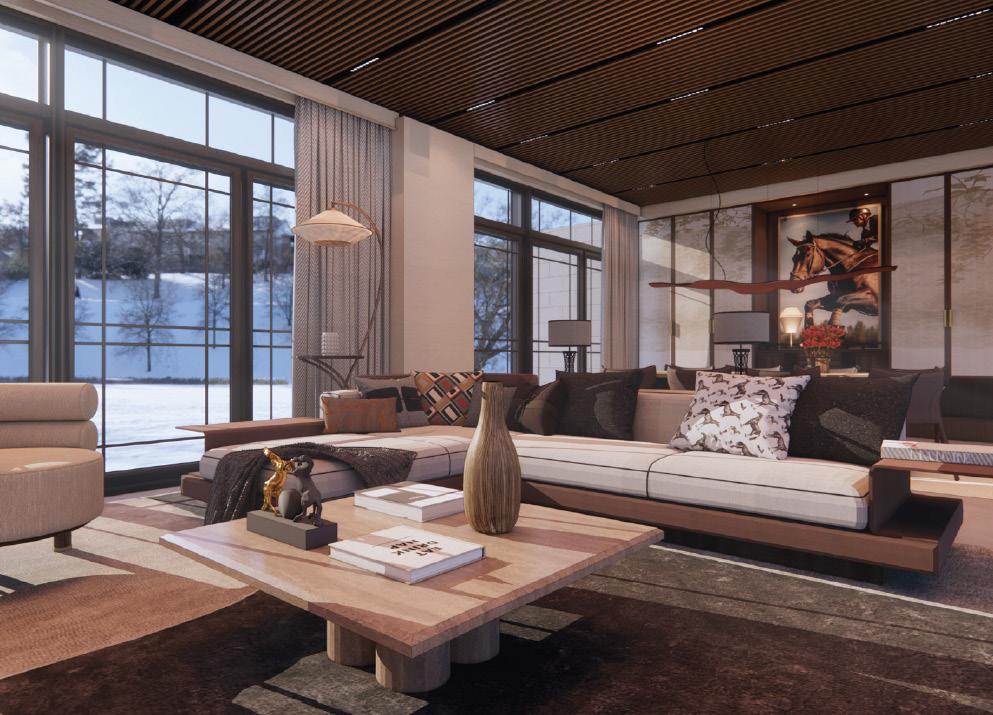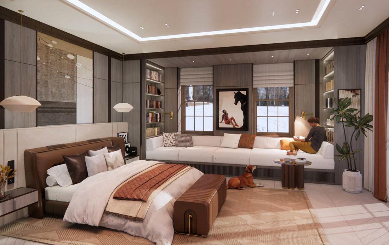 • To reflect the homeowner’s love for equestrian culture and to bring warmth to the suite in this colder region, the design incorporates rich leather and earthy-toned fabrics. These materials were carefully chosen to create a cozy, inviting atmosphere that complements their passion for horses.