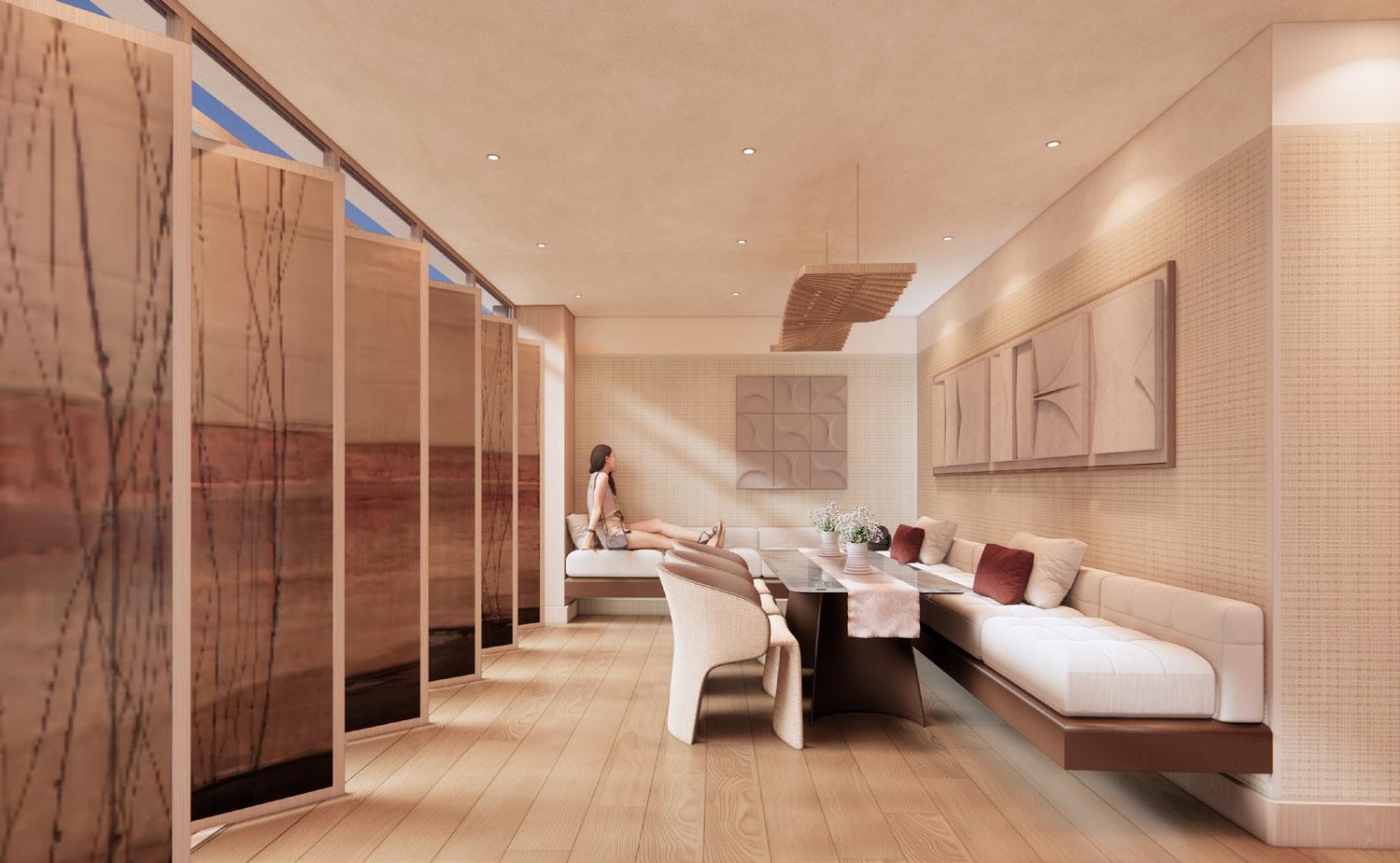 The design concept of Uplift is rooted in creating an unexpected experience that challenges traditional notions of luxury. By blending Montréal’s urban edge with natural, organic elements, the resort invites guests to explore dynamic spaces that surprise at every turn. Unexpected details like fashioned sauna rooms, sculptural lighting installations, and open-air lounges create a sense of discovery, transforming each area into a unique, immersive retreat. This approach disrupts conventional design, offering an environment where surprises await and every corner feels like a new, curated experience.