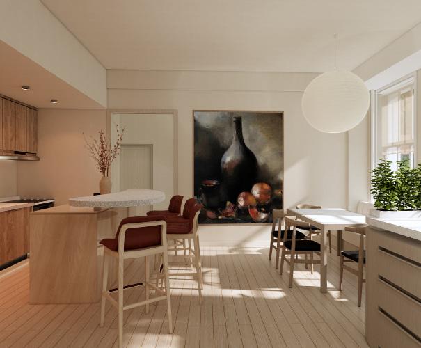 The renovation of this city apartment was centered around creating an open and airy space, despite the owner’s extensive collection of books and ceramic displays. The goal was to balance the need for storage and display with a sense of spaciousness, offering relief from the city’s often oppressive environment. With clean lines, ample natural light, and thoughtfully integrated shelving, the design fosters a calm, pressure-free atmosphere for the children to grow up in, blending functionality with an inviting, serene ambiance.