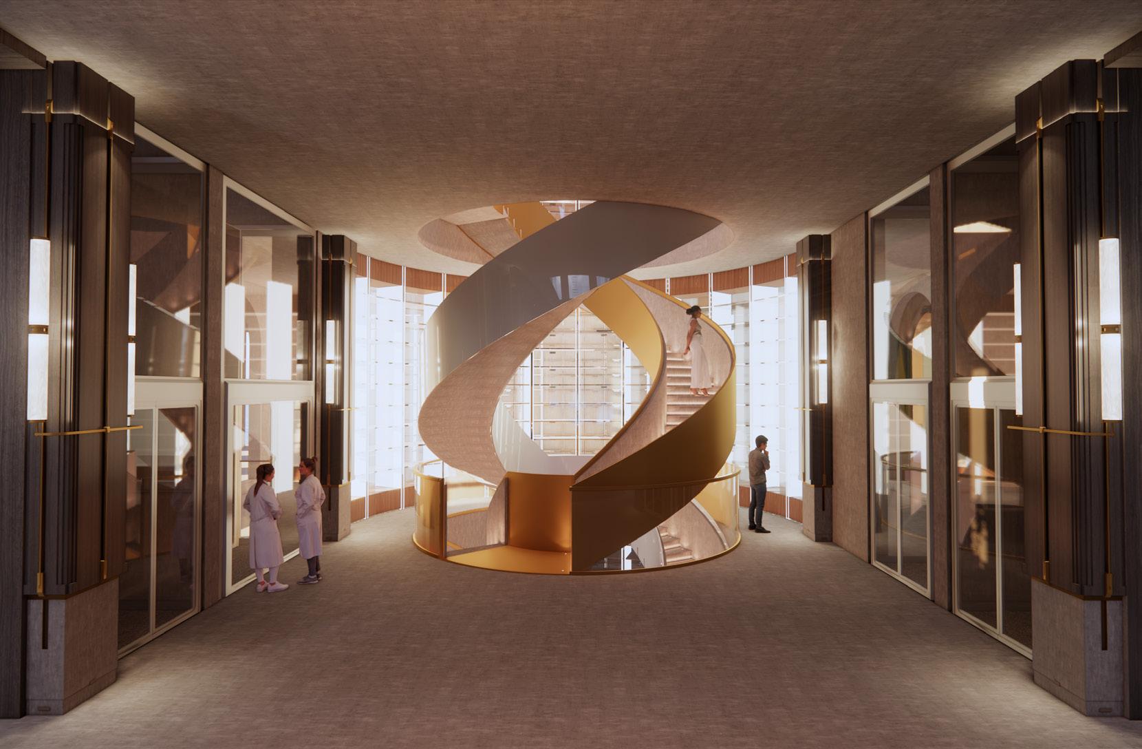 Another design inspiration comes from the structure of DNA, reflecting the scientific focus on genetic research. The double-helix shape of DNA, which symbolizes the foundation of life, became a key influence in shaping the design. Flowing lines and layered forms are incorporated to mimic the intricate structure of DNA, creating a space where science and creativity intertwine. This design not only captures the essence of continuous evolution but also embodies the spirit of innovation.