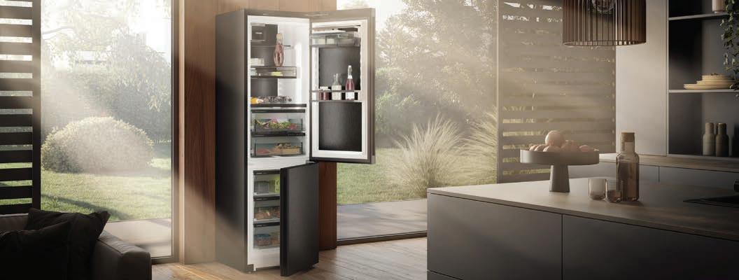 The BlackSteel range includes six models, all designed to enhance food freshness and energy efficiency. Liebherr’s BioFresh technology creates the ideal climate to keep food fresh for longer, while HydroBreeze