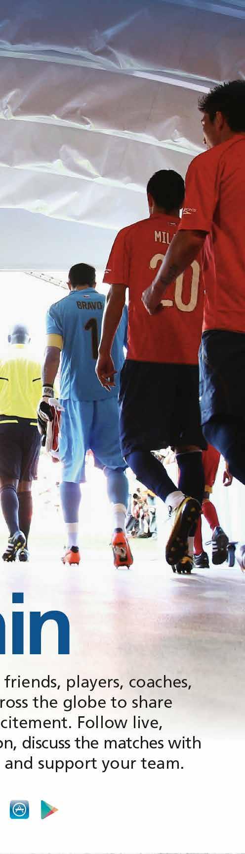 Subsequent supply of over 1,000 instant-response graphics for upload to Twitter and Facebook following strict branding guidelines for FIFA and FIFA stakeholders. This involved immediate turnaround following live action during the tournament. Once signed-off the graphics were translated into five languages and circulated worldwide.