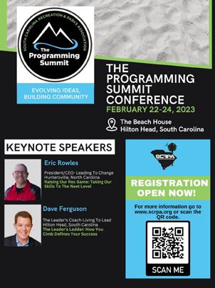 As you continue to fill your calendar with excellent programs and events this year, be sure to stay tuned to hear about the many professional development opportunities offered each month. Read through the bi-weekly SC Snapshot e-updates, the Scrap Paper e-newsletters, and the SCRPA website to stay informed. We will be joining North Carolina Recreation and Park Association for our first joint-conference post-pandemic. Held Dec. 11-13 in Wilmington, NC it’s sure to be an excellent opportunity to stay connected across the Carolinas!