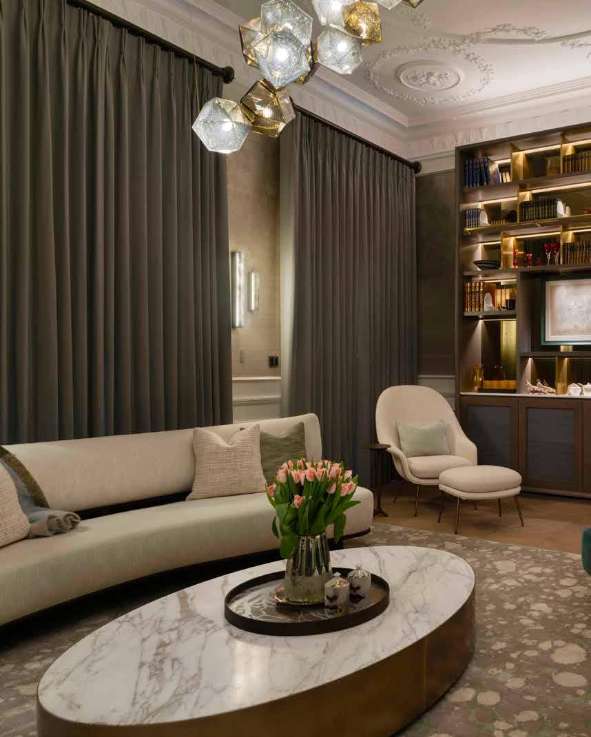 Mdesign London Ltd focused on optimizing the internal configuration and flow of the house to cater to modern-day family living while pushing the boundaries of design. The vision was brought to life through the use of the finest materials, sumptuous fabrics, handcrafted furniture, specialist finishes, and custom-made creations from acclaimed artisans worldwide.