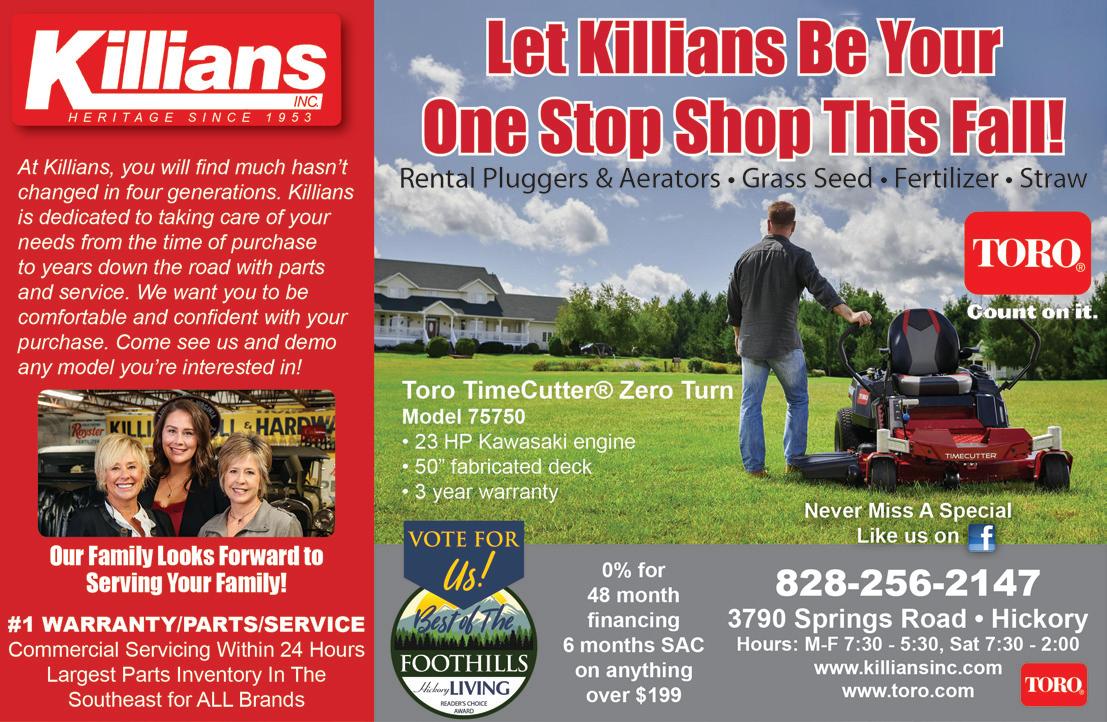 A Hickory institution, Killians is always growing, and believes that the best is yet to come! To their many lines of outdoor power equipment, Killians is adding Ventrac compact tractors and attachments to serve municipalities, commercial customers, and property owners. Of course, as with all of their brands, they offer