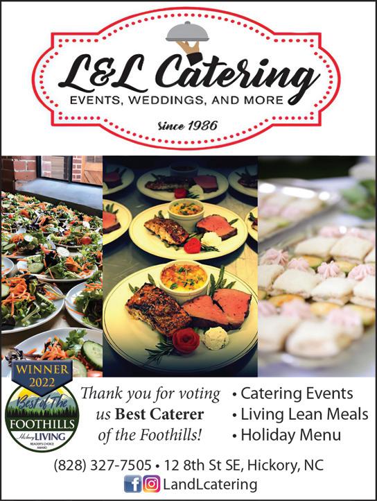 This month, we are happy to announce the winners of Hickory Living’s Best of the Foothills Readers’ Choice Awards! When I delivered the plaques to each business, they were so excited, honored, and grateful for your support. Thank you for voting for your favorites, and the winners are...on page 31. With this being the busiest shopping season of the year, we hope you shop local for those