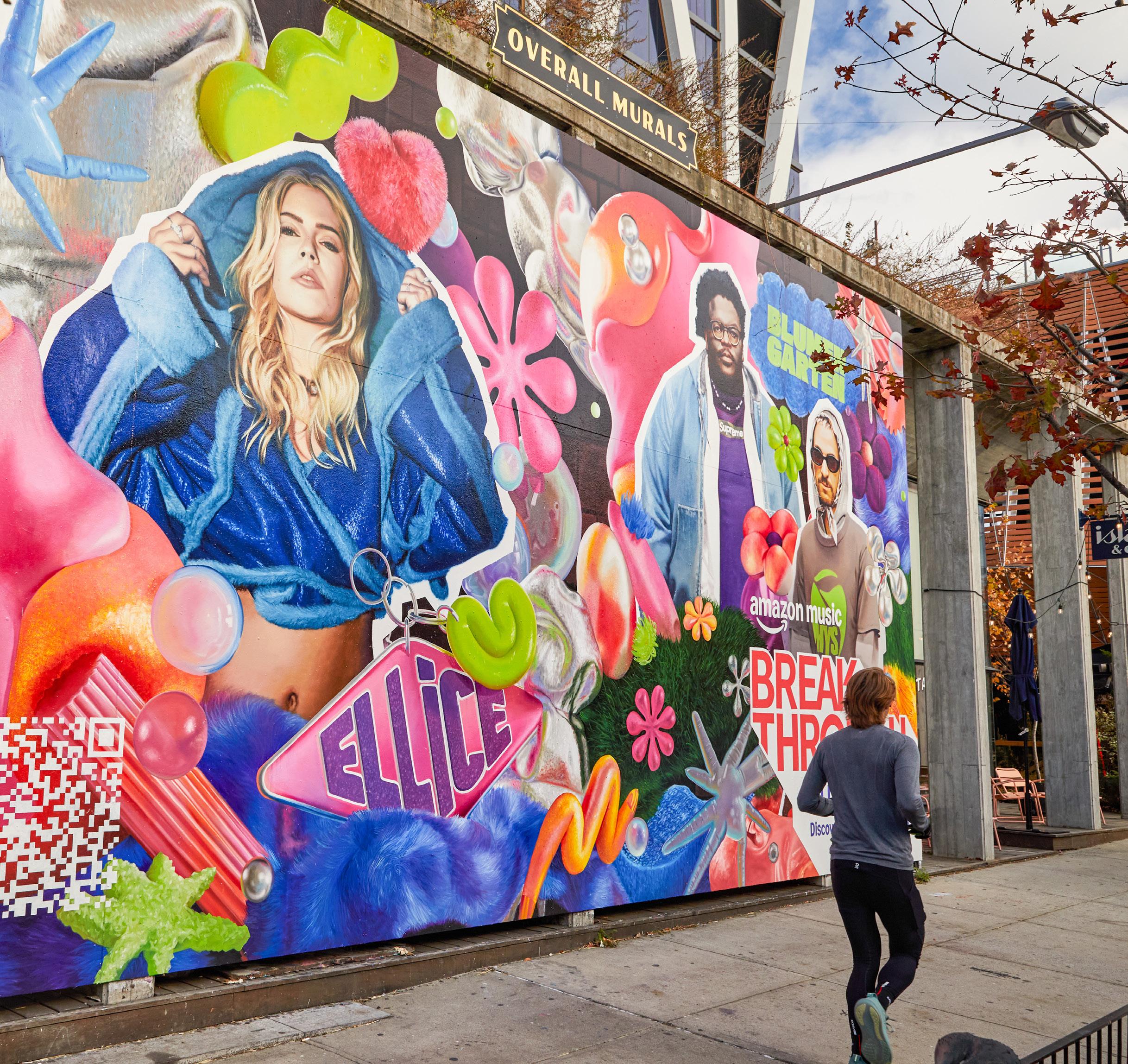 I WAS COMMISSIONED THREE TIMES BY AMAZON MUSIC IN THEIR ONGOING MONTHLY SERIES TO HIGHLIGHT UPCOMING MUSICAL ARTISTS. ELLICE AND BLUMENGARTEN WERE THE GERMAN ARTISTS TO CELEBRATE IN THIS MONTH. TRYING TO VISUALIZE THEIR MUSIC WHILE HAVING A CREATIVE CARTE BLANCHE WAS GREAT! THE BEST PART OF THESE COMMISSIONS IS THAT WHEN DONE, AMAZING PAINTERS FROM "OVERALL MURALS" WOULD PAINT IT HYPER-REALISTICALLY ON A MASSIVE WALL IN NEW YORK CITY.