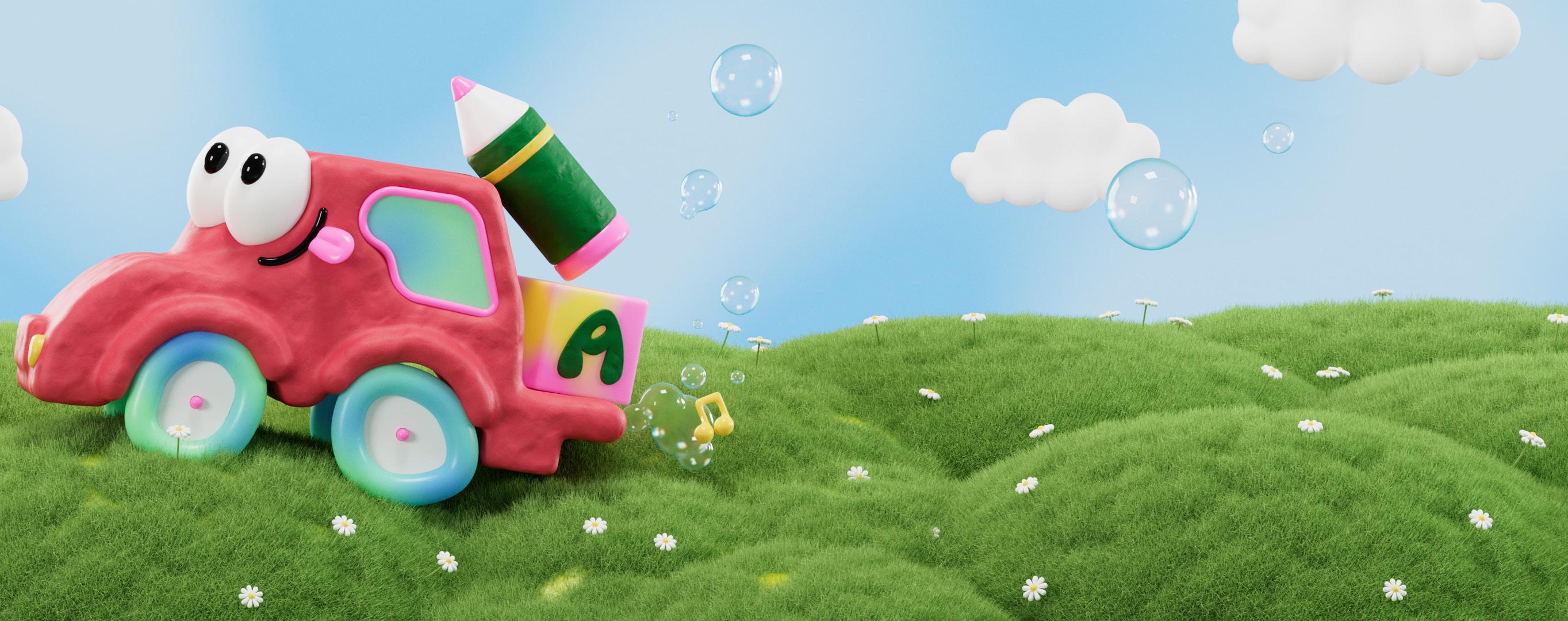 ARTWORKS FOR APPLE. THE PLAYFUL CAR IS USED AS A KID'S PLAYLIST ARTWORK WITH SONGS FOR TODDLERS, EXPLORING BASIC SHAPES, DIFFERENT TEXTURES AND CREATIVITY. IT'S A LOOPING ANIMATION, DRIVING ON THE SOFT GRASS – MY SON LOVES IT! THE OTHER PIECE IS A COVER ILLUSTRATION FOR 'CREATE ON AN INFINITE CANVAS', A COLLECTION OF APPS IN THE APP STORE WHERE YOU CAN EXPLORE CREATING WITH THE APPLE VISION PRO.