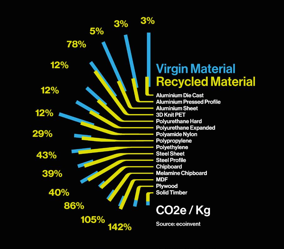 Circularity is harder to quantify because systems aren’t fully in place yet. At the moment, the most circular options are often very classical materials like steel and aluminium.