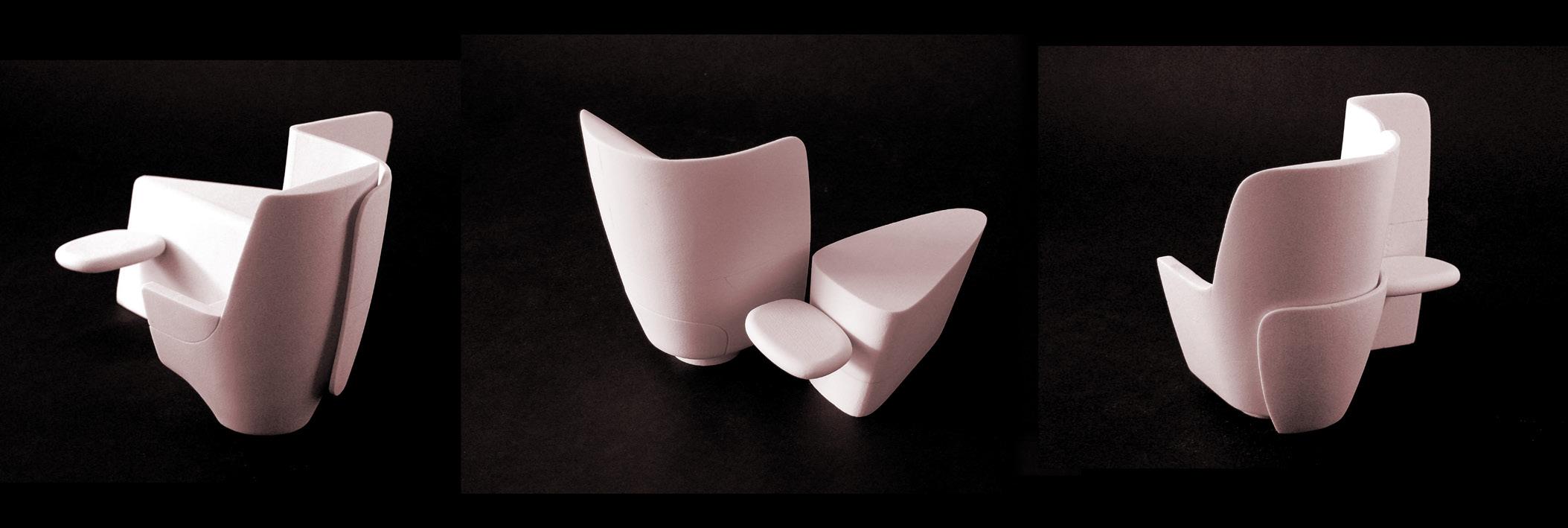 Take the HUG project for Cozmo. On our website you can see the range of model-making processes we went through. We were exploring how foam and fabric can be manipulated to create comfort, and we built a whole series of prototypes. The first presentation to the client was simply one of these prototypes that everyone sat in.