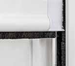 LARGE rullegardiner kan fås til mørklægning, hvor stoffets bagside enten er neutralt hvid eller hvor farven matcher forsiden. For at få den fulde mørklægnings effekt kan der vælges sideslister med eller uden børster. Se under mørklægning side 20.