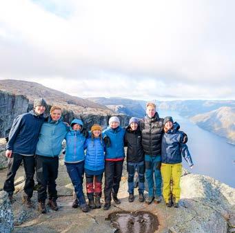 Høsten starter med fjellturer, basecamp og overnattingsturer i Jotunheimen. Du lærer å bruke kart og kompass, sette opp telt, lage mat på bål og klare deg ute i ulike værforhold. Det blir brekurs, elvepadling, klatring og surfing i Hoddevika, og mange gode dager ute i vestlandsnaturen. Når vinteren kommer, står vinterfriluftsliv og toppturer på planen. Du lærer trygg ferdsel i snø, vurdering av skredfare og bruk av sender/mottaker. Vi bygger snøhule, øver på førstehjelp og drar på turer med fjellski og storsekk. I løpet av våren forbereder vi oss på ekspedisjonen til Afrika, både fysisk og mentalt.
