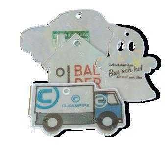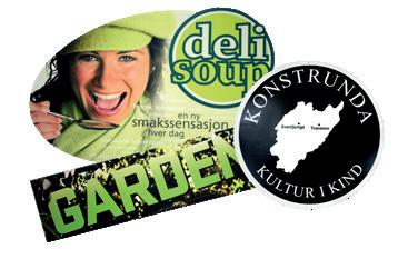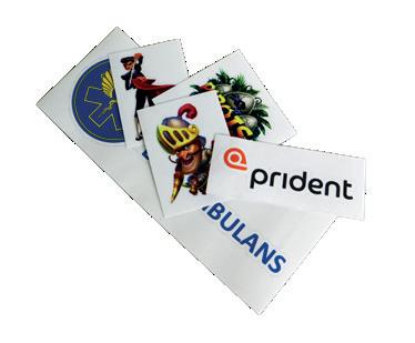 Plastic stickers on white vinyl, unlimited number of colors. No up-front costs whatever the shape, incl. 4 colour print. Bespoke shape. Supplied individually.