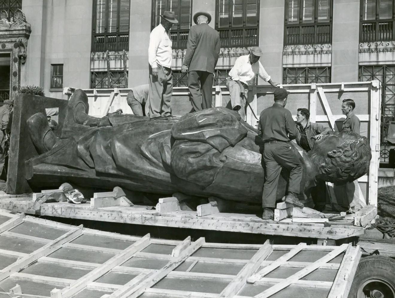 First, the massive statue had to make its way from Italy to Columbus. The statue was publicly displayed at the Port of Genoa before being packed and shipped to the U.S. aboard an Italian Line ship named, appropriately, Cristoforo Colombo. The statue was displayed at port in New York City for several days before being transported by rail to Columbus, where it was unpacked and installed on a new pedestal at City Hall in time for the city’s Columbus Day celebration.