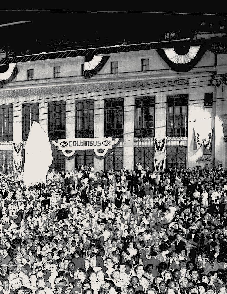 Presidential Assistant Harold Stassen called it ‘the most thrilling and unusual Columbus Day ever held.’ And it must have come close to that. Because the city’s holiday celebration Wednesday night drew a crowd of 100,000 persons, one of the biggest in local history for any kind of event…It was a time of speechmaking and some kind of record was probably set for sheer volume of tribute to Columbus, the city and the man.8