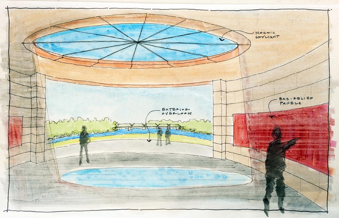The design program for this project was a matter of some debate among the design team, with some arguing that the space should be akin to a museum and others arguing for a grander scope. Ultimately, Designing Local led the team to imagine an experience of exterior and interior spaces that would be unparalleled in Columbus, or, indeed, anywhere in the country — a site so spectacular that the statue itself would recede into the background of the city’s evolving story.