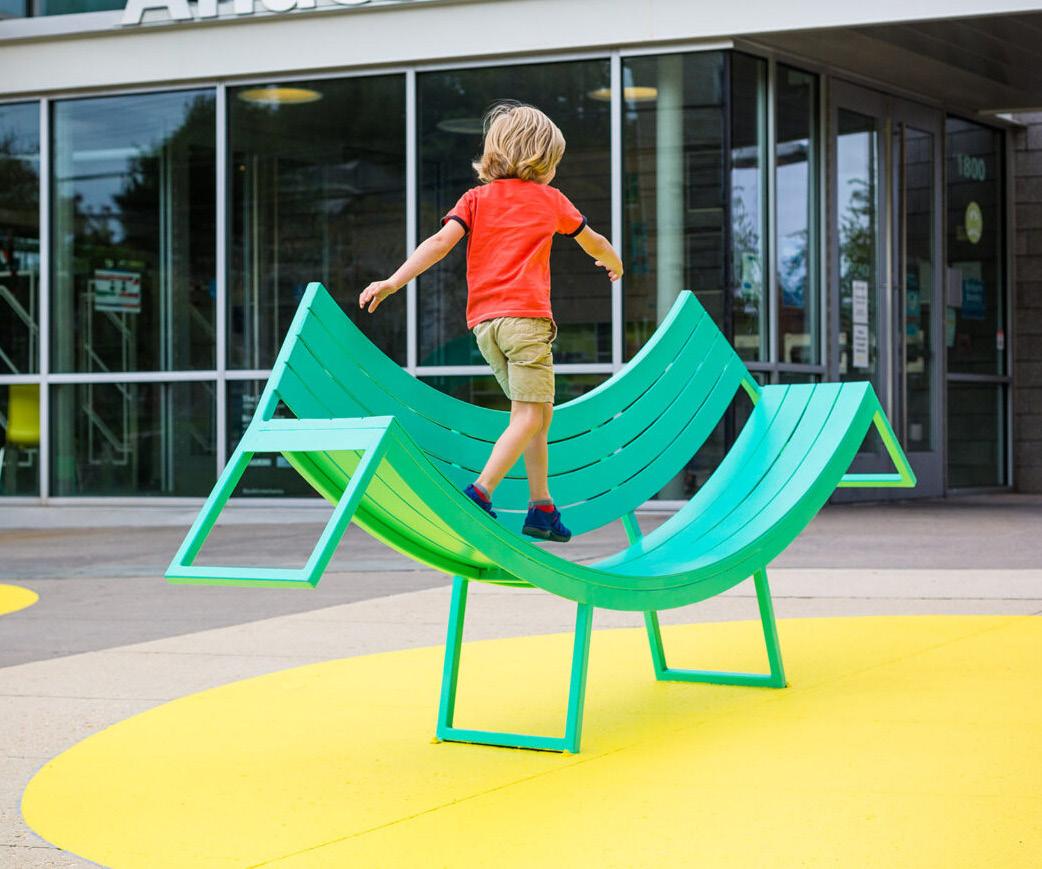 Introduce uniquely designed and artistically crafted benches and other seating elements in public areas, particularly around Center Lake, Buffalo Trot and sculpture play park. These creative seating options would enhance comfort and visual appeal in high-traffic pedestrian zones.