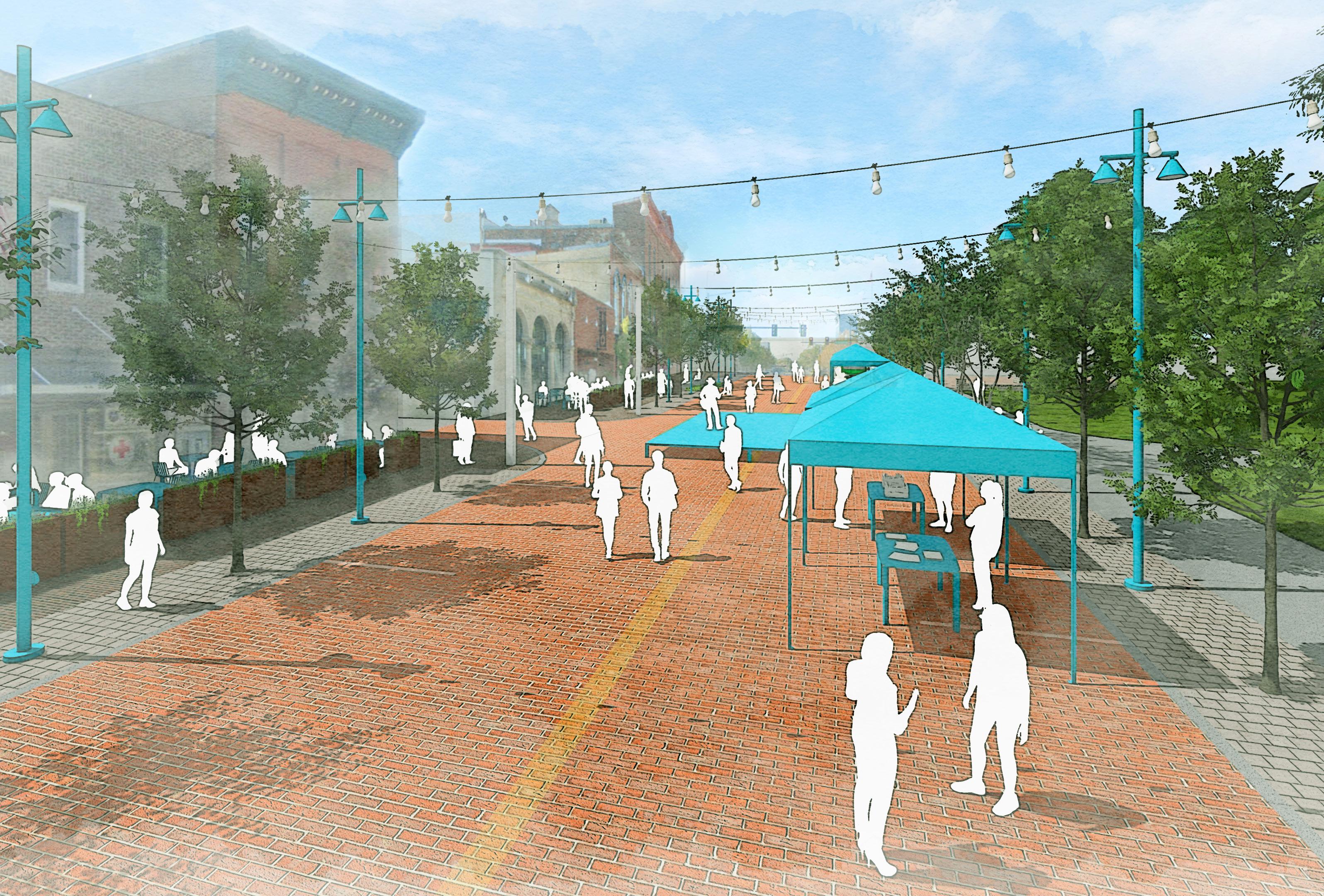 • Activate Public Spaces: Suggests creating “Festival Streets” for block parties and events, creating a covered event pavilion (potentially on the City Hall parking lot), and transforming infrastructure elements (like the transmission pole in Central Park) into public art.
