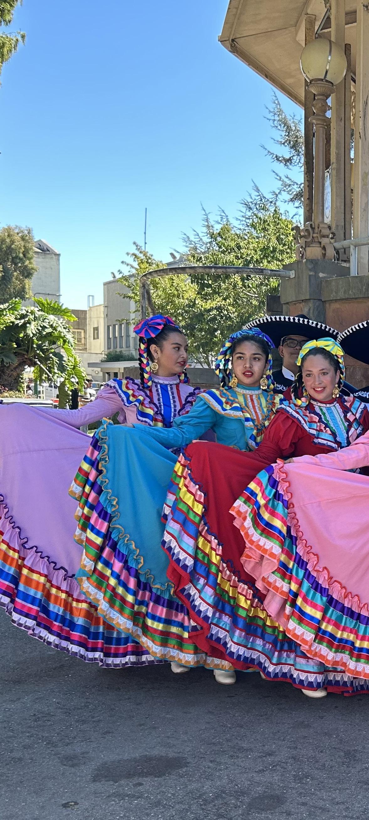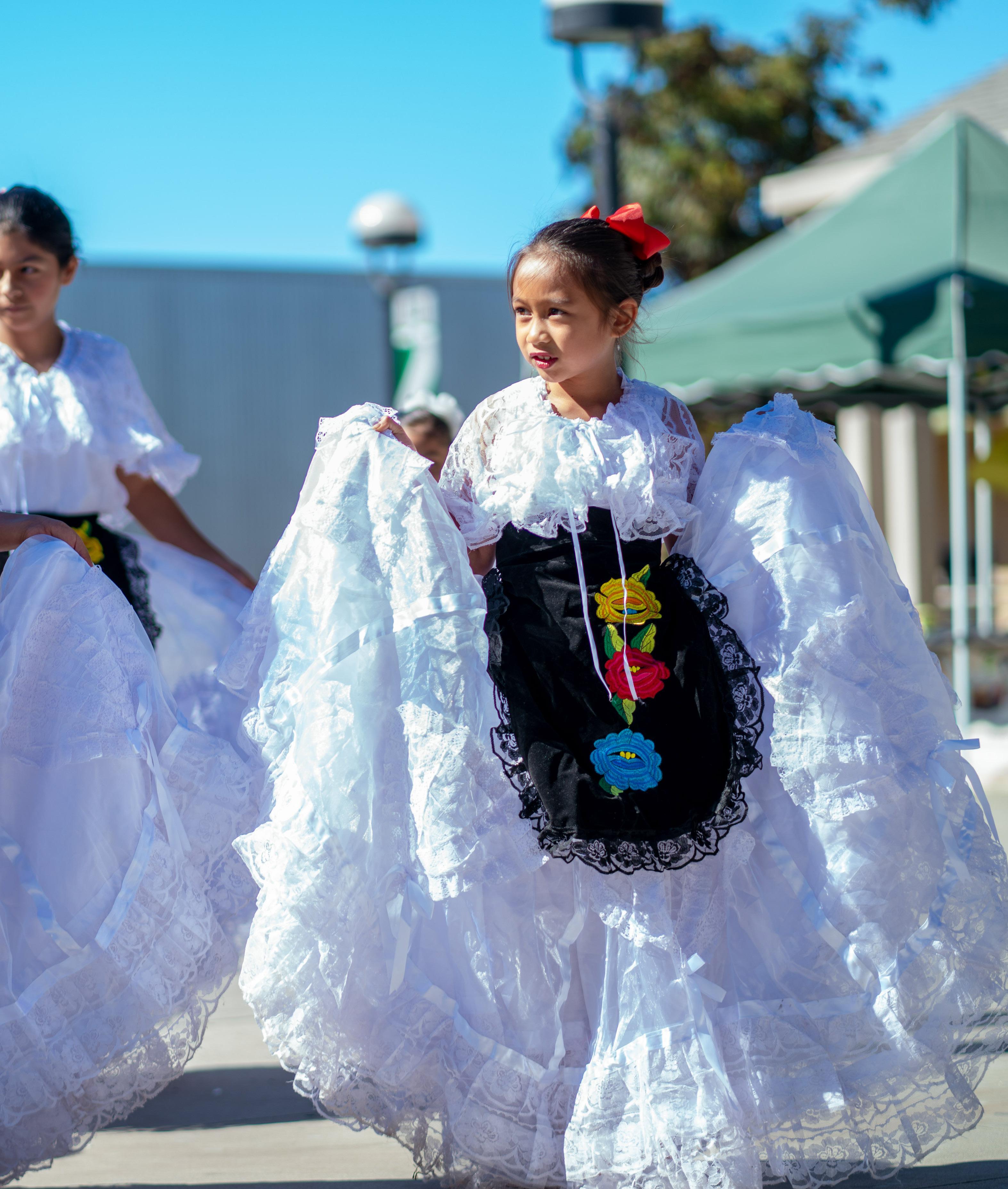 Folklorico, often referring to Danza Folklórica Mexicana or Mexican Folkloric Dance, sometimes Danza Azteca, is a lively and varied genre of traditional Mexican dance. It highlights the regional diversity of Mexico through unique costumes, music, and dances that reflect the customs, history, and daily life of different states and communities. It is often used as a vehicle for storytelling and preserving folklore traditions. Folklorico dance is a feature of community events like Dia de los Muertos, Fiestas Patrias and the Strawberry Festival celebration. It is a spiritual and ceremonial dance that dates back to the pre-Hispanic cultures of Central Mexico, especially the Mexica (Aztec) people. This dance often features elaborate feathered costumes, percussive instruments like drums and rattles, and specific movements that reflect cosmology, history, and community values. Danza Azteca serves as a form of prayer, celebration, and cultural preservation. The Aztec Dance Ceremony of “Xilonen” has been practiced in Watsonville for decades by the White Hawk Dancers. Folklorico in Watsonville engages community members, young and old, who practice in arts spaces year-round, honing this tradition.