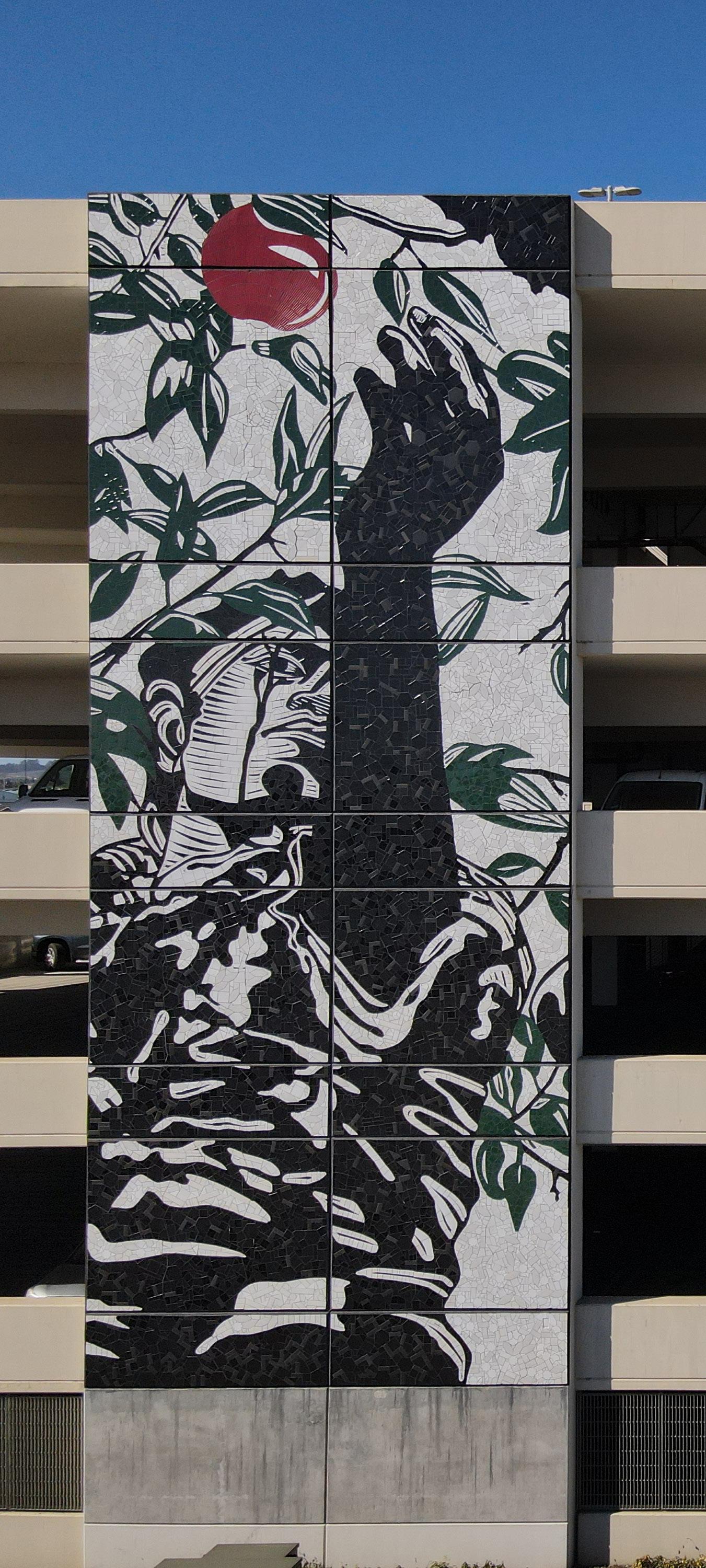 The soul of Watsonville is deeply rooted in its agricultural history and heritage, nestled in the Parajo Valley, one of the most productive farming communities in the world. Hand-picked crops have been a mainstay of economic life in the community, attracting workers from around the world to Watsonville, shaping both the physical and cultural landscape. This agricultural heritage has been brought to life through murals like “Pájaro Valley Apples” and “Berry Bowl” and mosaic inlays by Kathleen Crocetti reflecting the migrations and farming patterns that have shaped the community since the days of the Gold Rush through the rise of agriculture in the Parajo Valley. The community also works to actively preserve and promote its agricultural past through the Agricultural History Project. This organization’s mission is to ensure public awareness of the economic, cultural, ethnic, and historical significance of agriculture on the Central Coast. They achieve this through educational exhibits, historical archives, and specific programs like “Yesterday’s Farm” and school tours, allowing visitors and school groups to explore the fascinating agricultural history of Sant