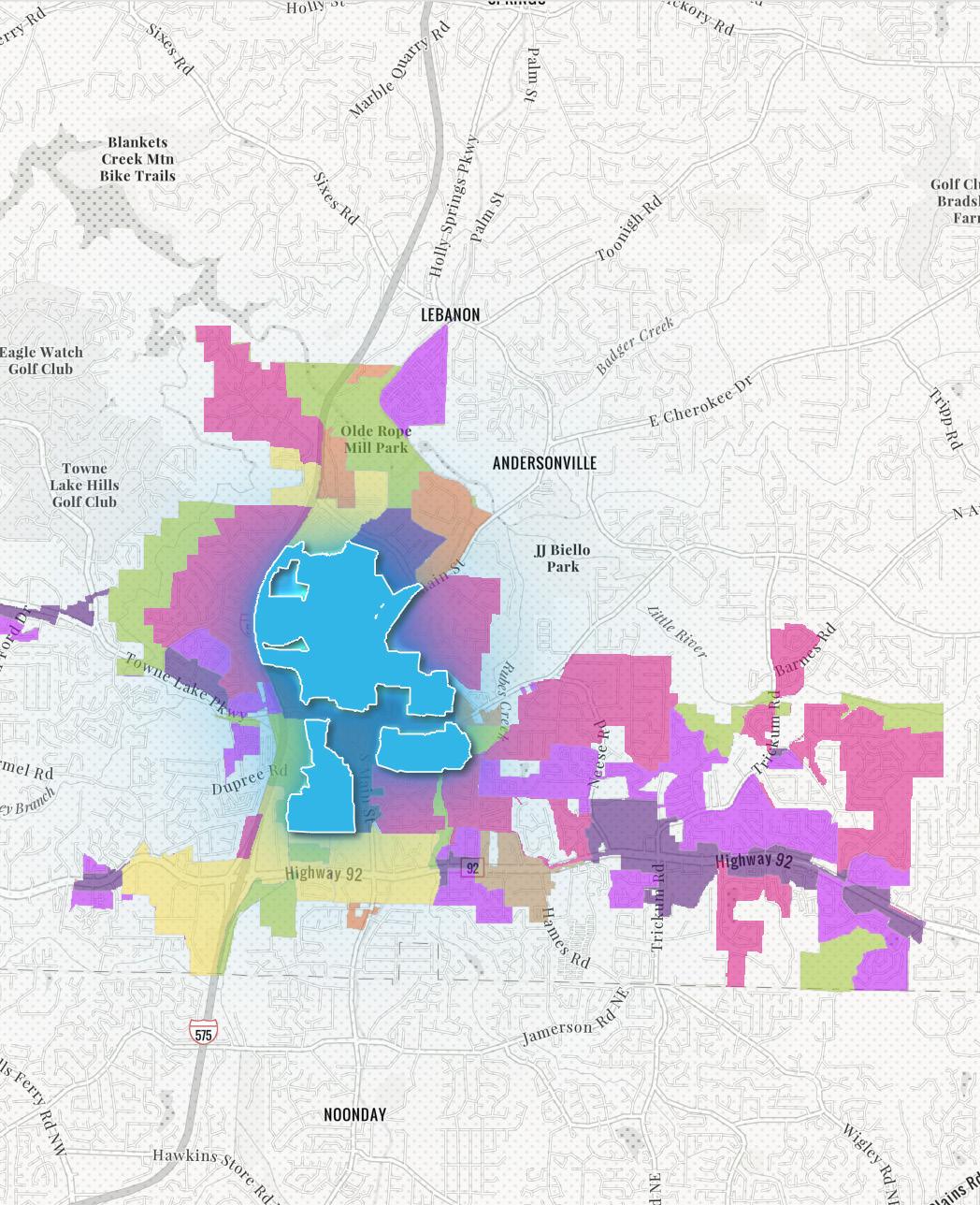 • Trails and Trailheads, such as Towne Lake Parkway and Buckhead Crossing