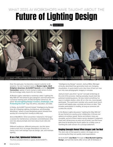 At ArchLIGHT, Lisa Reed, Principal at Reed Burkett Lighting Design, warned that clients often arrive with AI fantasies in