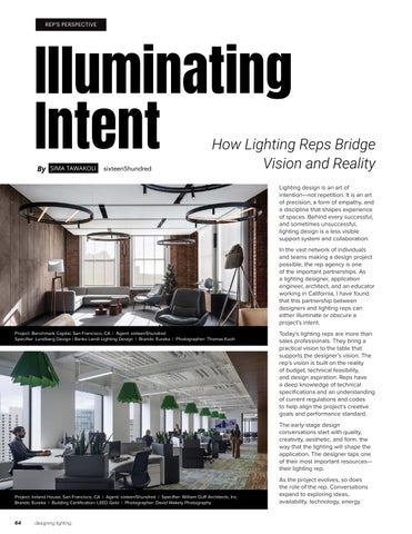 How Lighting Reps Bridge Vision and Reality Lighting design is an art of intention—not repetition. It is an art of precision, a form of empathy, and a discipline that shapes experience of spaces. Behind every successful, and sometimes unsuccessful, lighting design is a less visible support system and collaboration. In the vast network of individuals and teams making a design project possible, the rep agency is one of the important partnerships. As a lighting designer, application engineer, architect, and an educator working in California, I have found that this partnership between designers and lighting reps can either illuminate or obscure a project’s intent.