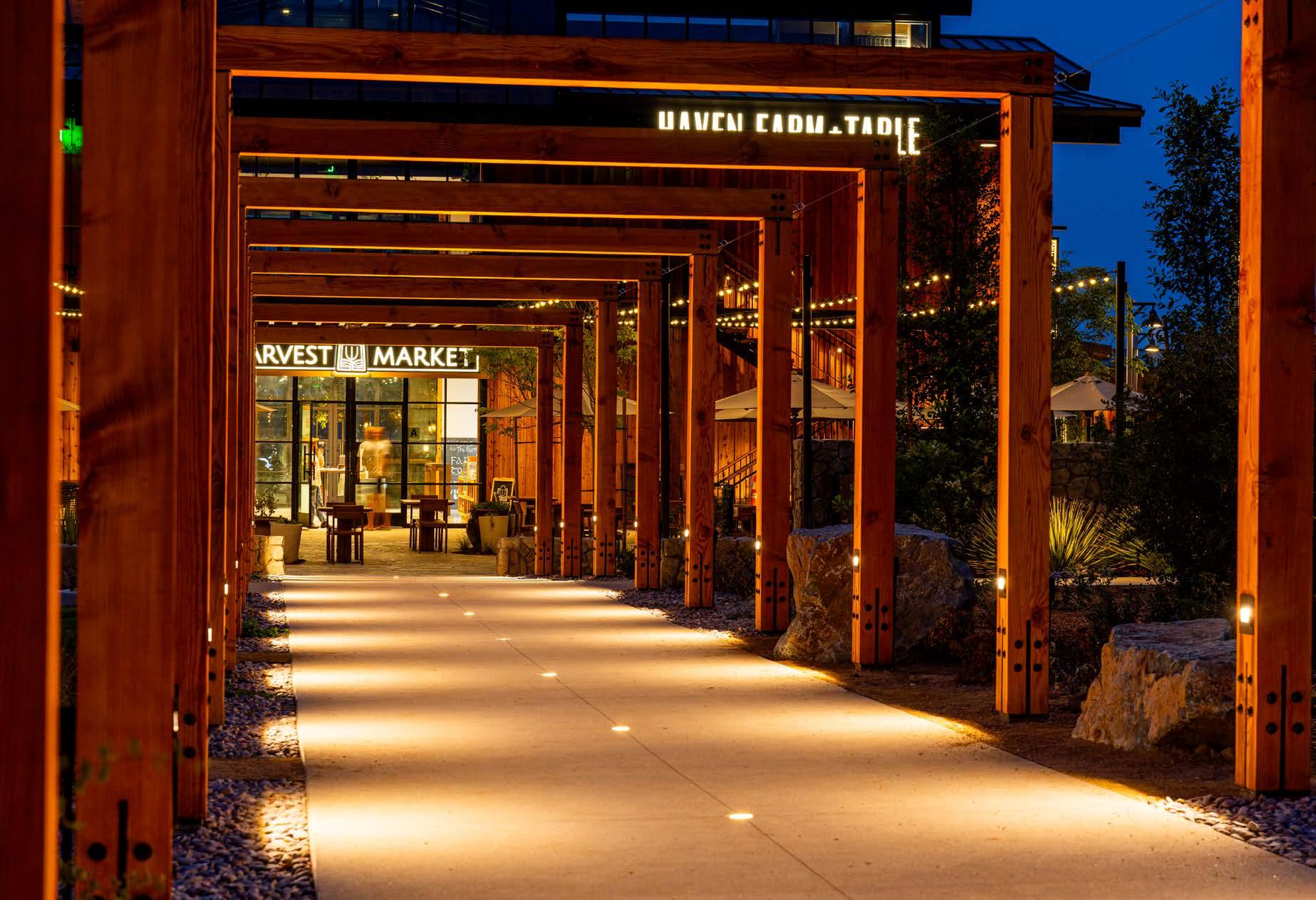 VCL’s cohesive exterior lighting design balances dynamism with a welcoming atmosphere. Perez’s vision was to transform the outdoor space into something visually compelling and engaging. A standout feature is the series of arched wooden tunnels leading visitors from the parking lot to the restaurant. He viewed these structures not just as walkways but as sculptural forms deserving of thoughtful illumination. "These tunnels, arbors, and archways almost appeared like sculptures to me—forms that needed to be highlighted in a way that was unique and engaging for visitors," he shared.