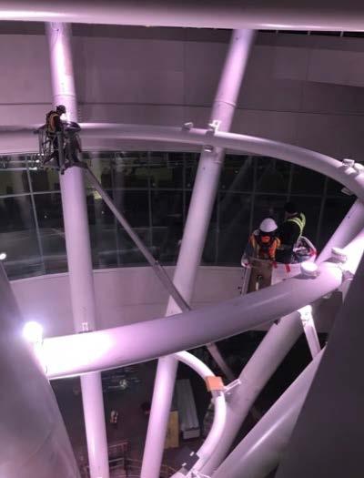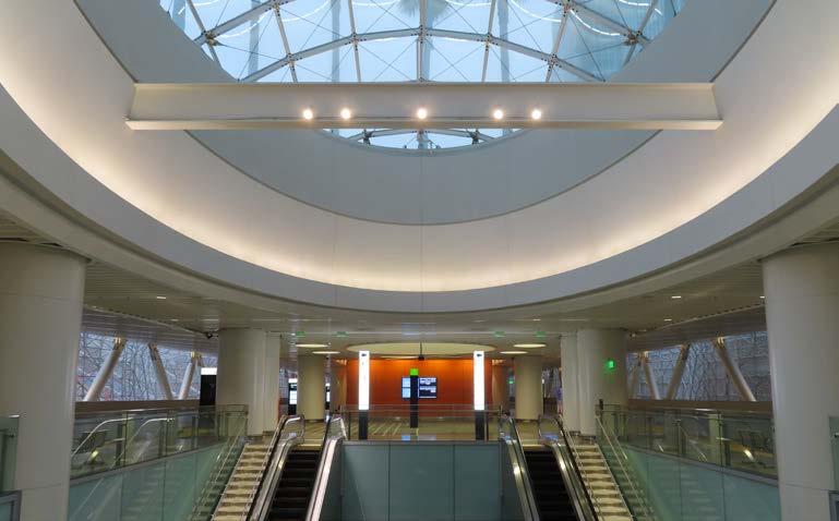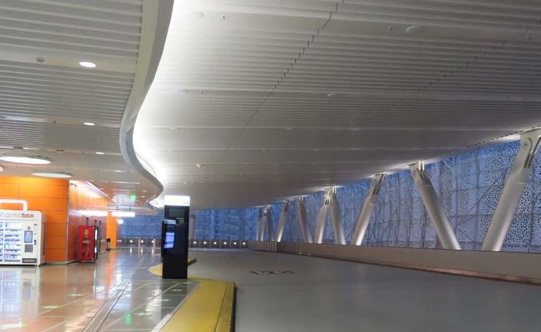 Lighting: (42) nominal 12’ runs of MOD Style F139 uplights with 3x54W T5HO cross-sectional lamping in each 4’ module; (85)F308-T255-S-00-2-00-0 dual-reflector 8’ cove lights concealed on top of 12’ tall entry vestibules
