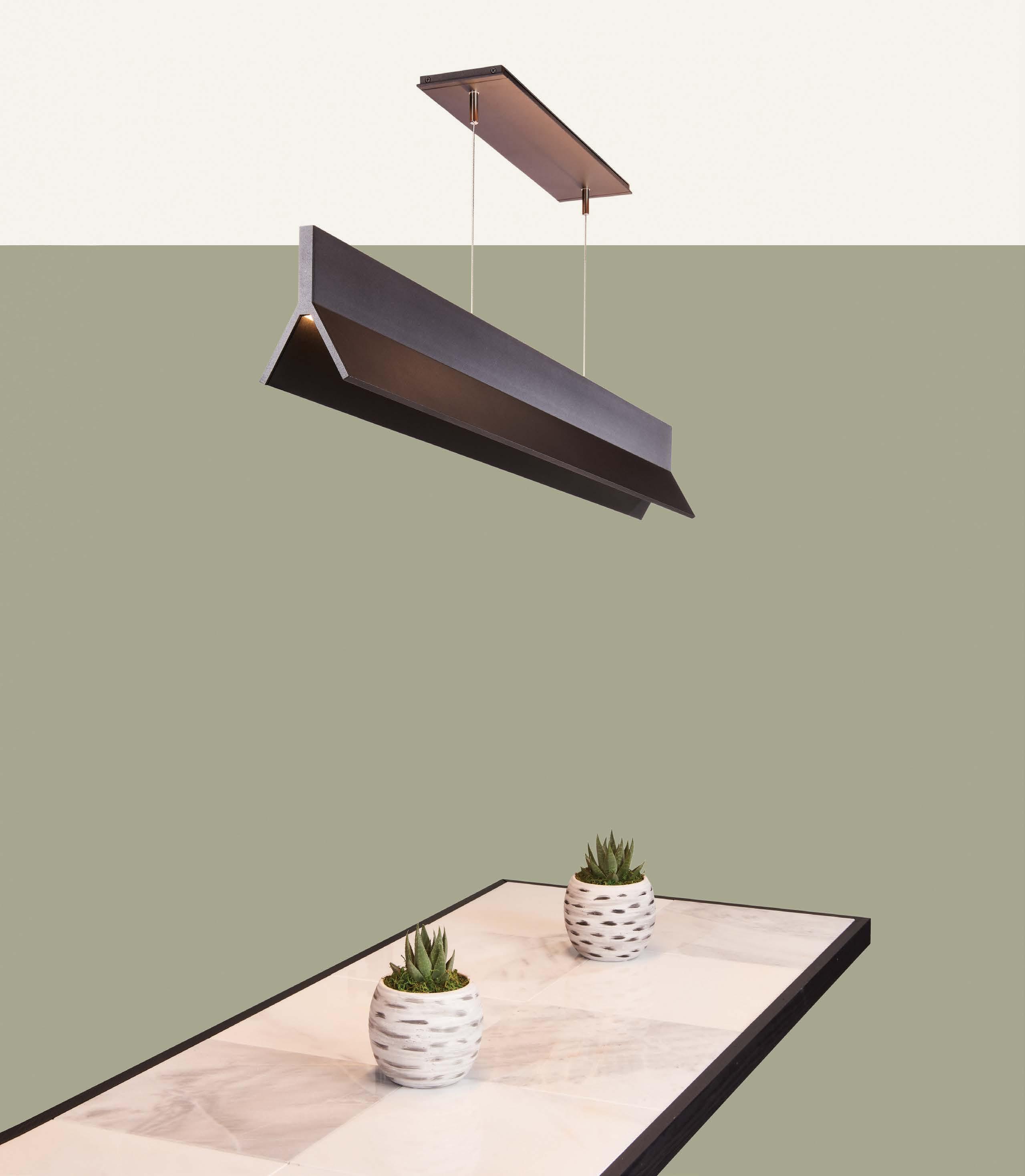 While the idea of drawing with light is certainly strong for Finne, he also thinks that when you’re designing a light fixture, it’s important to try and make the fixture in such a way that the fixture and the light are dovetailed together and complementary—rather than one thing being dominant, and the other one being secondary. “I could give you an example of a number of light fixtures I’ve seen where the shape of the light fixture is dominant and the way the light works out of the fixture is secondary, and I find that to be disappointing,” notes Finne. “You feel like the designer made a piece of sculpture and then threw a light in at the end because they had to have a light fixture. I’m not so interested in that. I’m interested in the shape of the fixture and the way the light emits out of the fixture as being as integral as humanly possible, so you can’t separate the shape of the fixture from the way the light emits—nor can you separate the way the light emits from the shape of the fixture.”