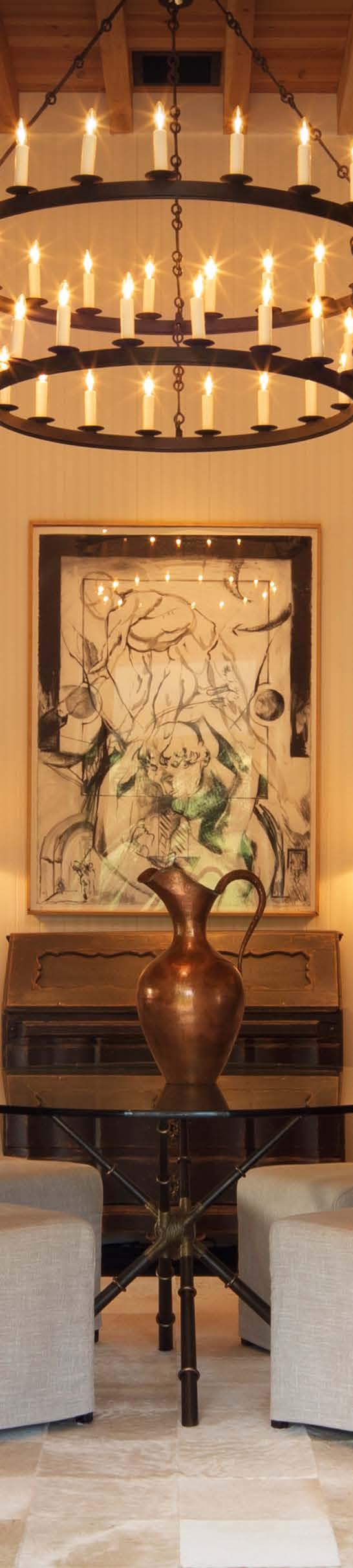 them to life—as was the case for the Venice House. “They make custom fixtures for all kinds of designers, and they really bring craftsmanship and expertise with wiring and troubleshooting to make sure everything works,” he says. “I actually have a custom fixture that they made for me hanging in my own office, so it’s kind of an advertisement for the whole process.” Finne adds that when he starts talking to clients, they will look up and say, ‘Oh, that’s beautiful. So yes, let’s do one of those.’ “Landbridge Lighting is key, and I’ve been working with them for probably 15 years or more. The two guys who run it—Stephen and Jesse—are just fantastic, and it’s like with any craftsmen: You walk on a construction site, they are there, and you listen to what they have to say. Craftsmen are working with their hands, and as a designer, if you’re kind, cooperative, considerate, and listen, they end up making you look very good. If you don’t listen, they can make you look very bad.”