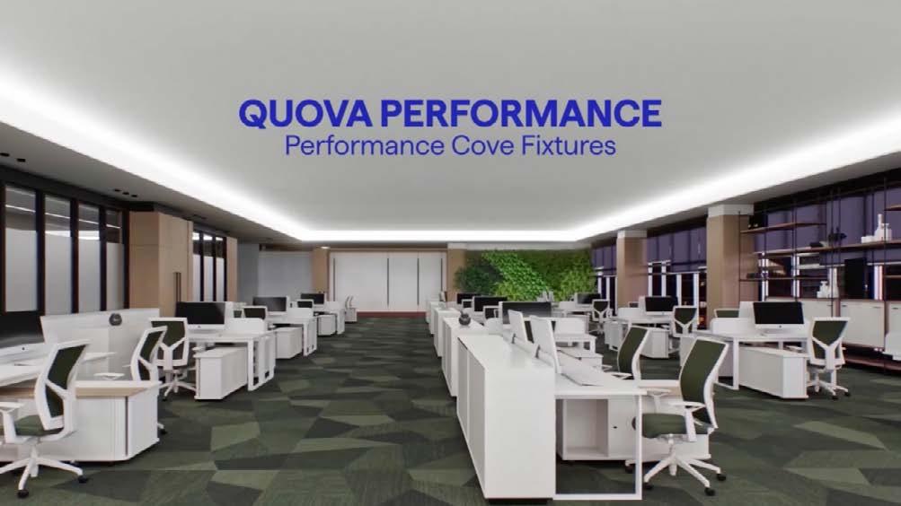 QUOVA PERFORMANCE boasts up to 900 lm/ft of output and 450 cd peak intensity at CRI 98, making it best in class. Its proprietary, asymmetric optic focuses light with high peak intensity, ensuring uniform illumination across ceilings, even from shallow coves.