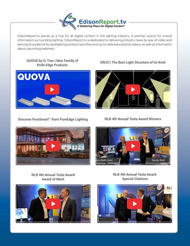 EdisonReport.tv serves as a hub for all digital content in the lighting industry. A premier source for critical information surrounding lighting, EdisonReport.tv is dedicated to delivering industry news by way of video and serving its audience by spotlighting product launches and up-to-date educational videos, as well as information about upcoming webinars.