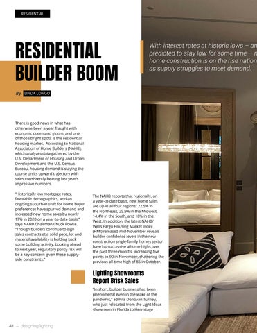 “In short, builder business has been phenomenal even in the wake of the pandemic,” admits Donovan Turney, who just relocated from the Light Ideas showroom in Florida to Hermitage