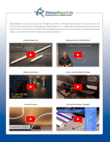 EdisonReport.tv serves as a hub for all digital content in the lighting industry. A premier source for critical information surrounding lighting, EdisonReport.tv is dedicated to delivering industry news by way of video and serving its audience by spotlighting product launches and up-to-date educational videos, as well as information about upcoming webinars.