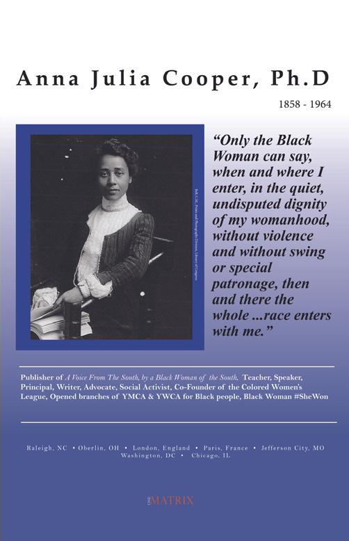 One Matrix Magazine, Summer '22 ONEMATRIX C. Chekejai Coley “Rev Bev.” SaundersBeverlyBiddlePaul Tina Marie Coley Darcie Davis Lauren Truitt The Team Creative Director Senior CreativeGraphicResearcher&IssueManagingEditorEditorAdvisor,Editor,Researcher&ContributorDesign&Contributor Summer 2022 OMM thanks Dr. Michelle Coghill Chatman and the WOSSRD Planning Committee for the collaborative efforts of this issue. Advertising opportunities are available. Please send inquiries to s2ndrising@yahoo.com Light of Truth Available only at One Matrix