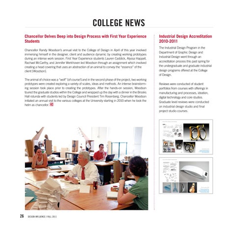 COLLEGE NEWS Chancellor Delves Deep into Design Process with First Year Experience Students