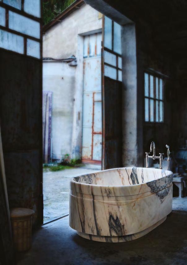 In its latest example of stone as an art form, Marmi expands the Edition series this year with new designs featuring stone block in 17 different varieties, specifically outfitted for the bath. Sculpted by European masters, the Edition No. 2 bath series includes bathtubs, vessel sinks, vanities, and washstands, as well as cabinetry and custom metal work. A continuation of the intrepidly styled Edition No. 1 mantels, Marmi’s new series brings neo classical tradition and fine stone craftsmanship into the luxury bath space.