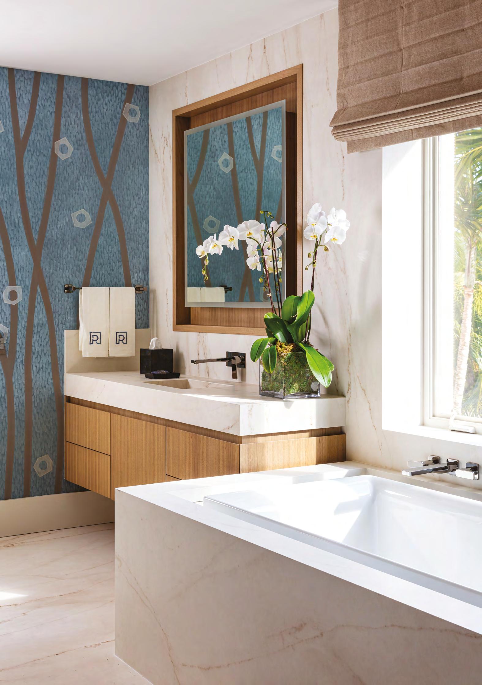 DLN Members Allison Paladino and Zita Rudd of Paladino|Rudd Interior Design have created Silent Mode, an experience oriented bath space featuring Dekton Rem that invites visitors to disconnect and to focus on well being. Designed for the sixth annual Kips Bay Palm Beach Decorator Show House in Florida, Silent Mode is a testament to the versatility of Cosentino’s Dekton, which the designers have used in the flooring, backsplash, framing for the mirrors, shower walls, and tub surrounds. The primary bath’s monolithic and elegant feel offers an invitation to visitors to immerse fully in the space.