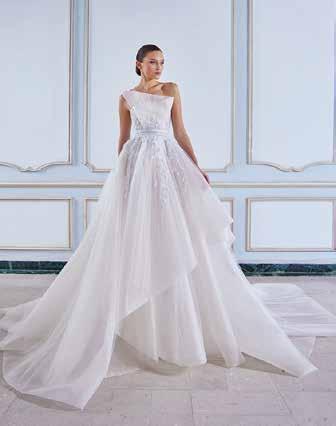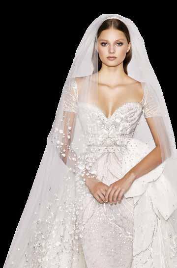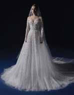 μέρος του νυφικού, δηλαδή στο μπούστο και τα μανίκια. Πολλές λεπτομέρειες, δαντέλα, ιδιαίτερα ανοίγματα και κρύσταλλοι κάνουν το
