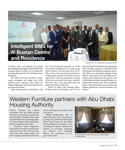 accents including curtains, pillows, and center pieces. Mikdad Bhabhrawala, CEO of Western Furniture, said: “It is with great privilege to be partnered with the Jebel Hafeet Project under the Abu Dhabi Housing Authority in sharing its vision of leading the capital’s infrastructure ambition by providing integrated, cost effective, and sustainable delivery and maintenance of the government assets.”
