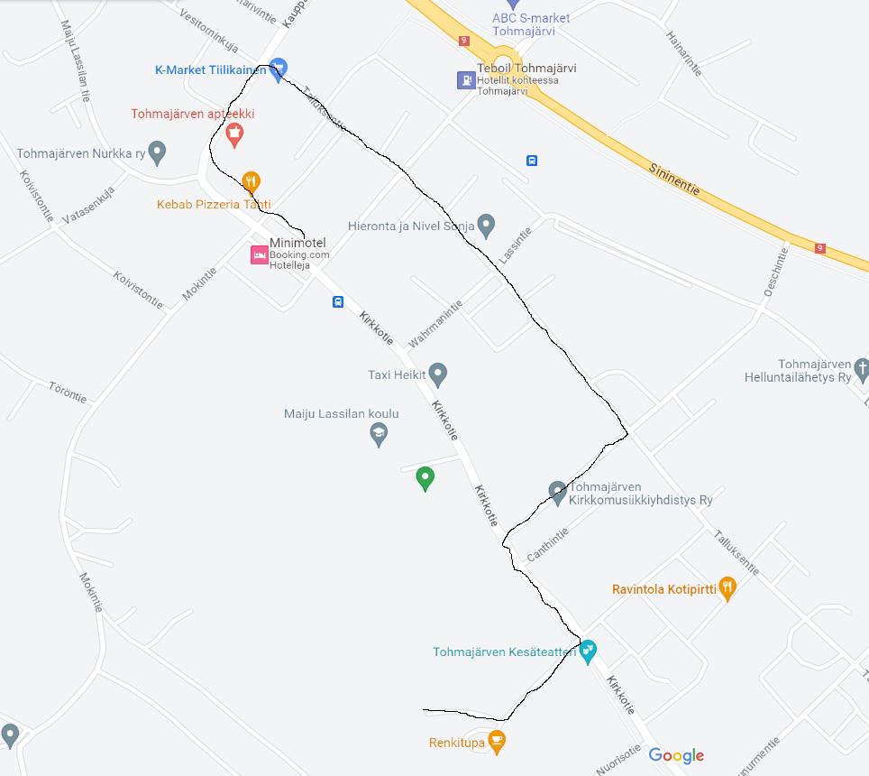Keskiviikko klo 9.15 Reitti: Kemie – Petravaara – Perä-Musko – Värtsilä – Kenraalinkylä – Selkäkylä – Kaurila – Uusi-Värtsilä – Kemie. Paluu klo 14.00. Toffolan Taksi p. 040 530 0365
