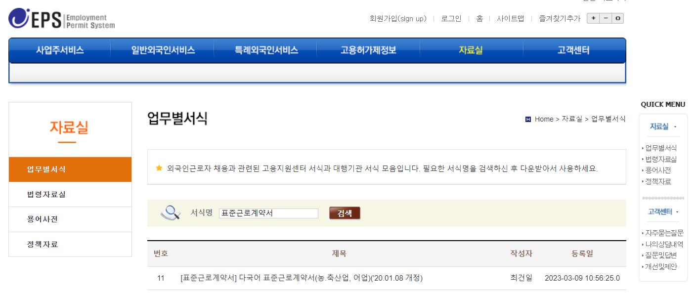 외국인근로자 고용변동 등 신고서를 제출합니다