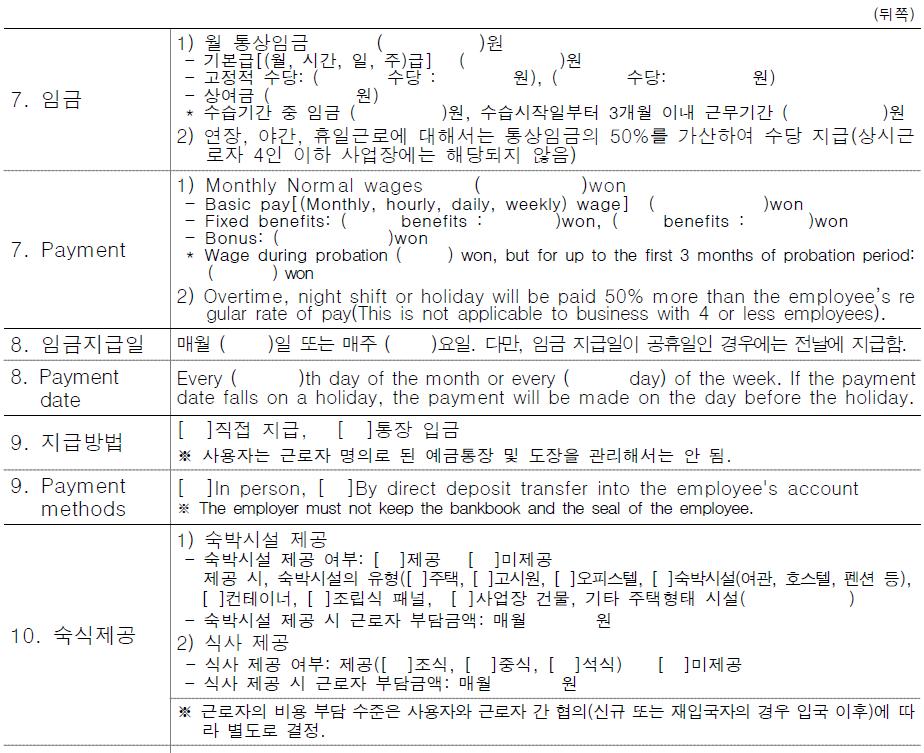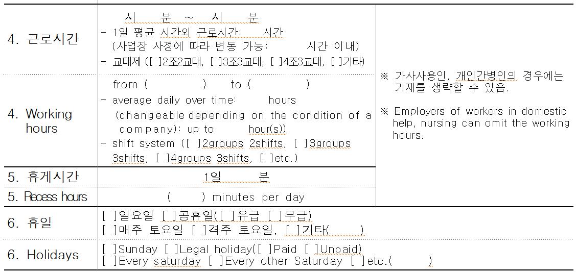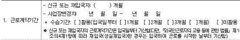 ⑨~⑫는 외국인근로자 고용허가서의 외국인근로자 고용허가 내용과 동일하게 적습니다